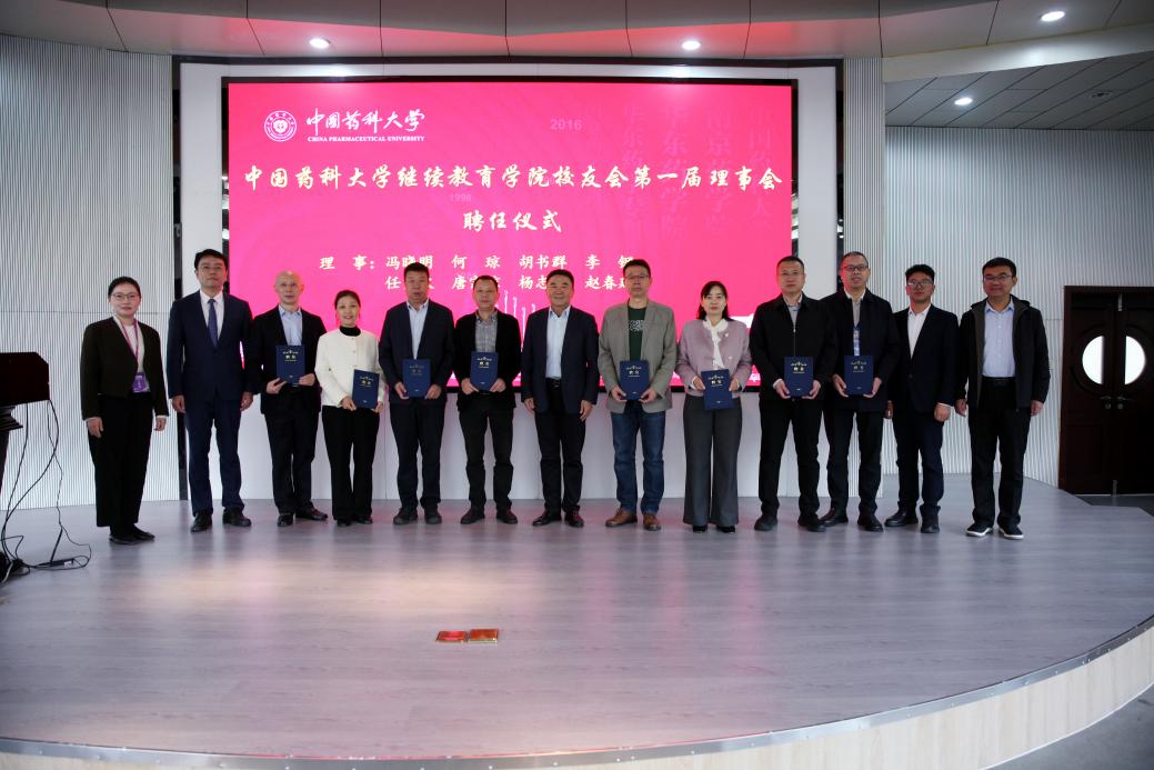 继续教育学院校友会成立环节,狄斌宣布了《中国药科大学继续教育学院校友会机构设置及任职人员名单》,为继续教育学院校友会揭牌,与会领导为第一届理事会成员颁发聘书,副会长蒲开富作为校友会代表发言。
