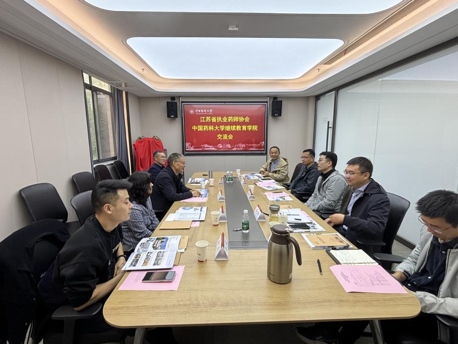 近日,江苏省执业药师协会副会长兼秘书长王吉东一行来我校继续教育学院(以下简称“学院”)调研交流。江苏省执业药师协会副秘书长潘思俊、曹莉莹、余龙,学院院长张杨彬、副院长张志强及学历教育部、在线教育部、培训部相关人员参加调研交流会。